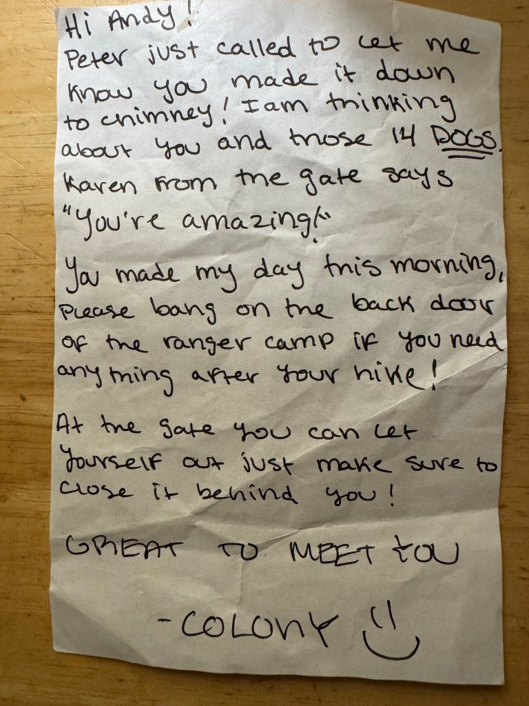 Feeling full of accomplishment after hiking Maine’s two highest mountains, the note from Ranger Colony made my day even more special.