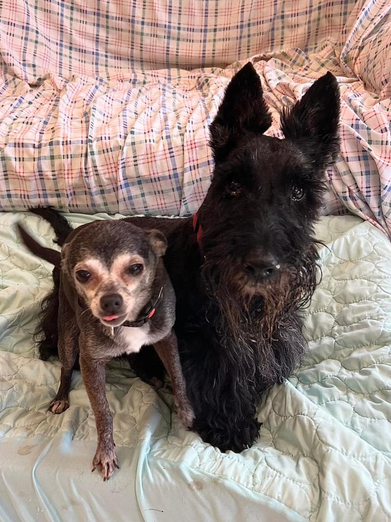 While honoring the fourteen senior dogs at Finally Home, Katahdin Kritters in East Millinocket had been caring for and loving my Scottie dog Victoria, and Chihuahua Flora, and Angus the Cat. (Yes, we celebrated his second birthday on August 7.) A shout-out from the summit of Katahdin! I am grateful to Kelly, Mike, and the whole Team – thank you!